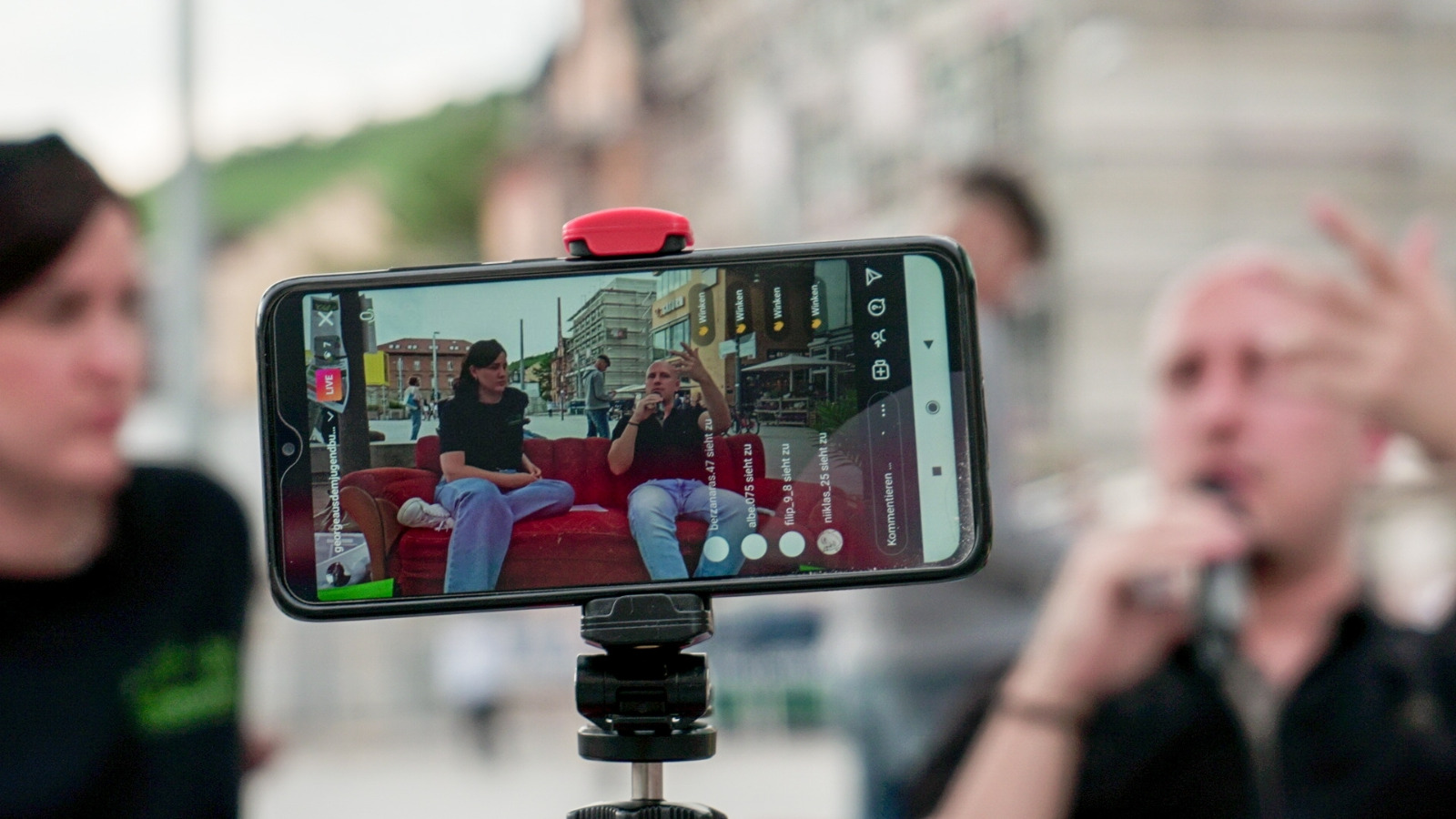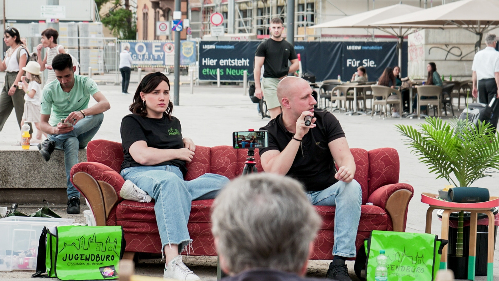 Mit dem Jugendbüro Esslingen durfte ich Teil eines sehr interessanten Projektes sein – direkt am Bahnhof in Esslingen wurde eine Couch aufgestellt, und über mehrere Stunden hinweg sind wir dort in den offenen Austausch mit Passanten zu den Themen Gewalt und Jugendkriminalität gegangen. Es kamen äußerst interessante Gespräche zustande!